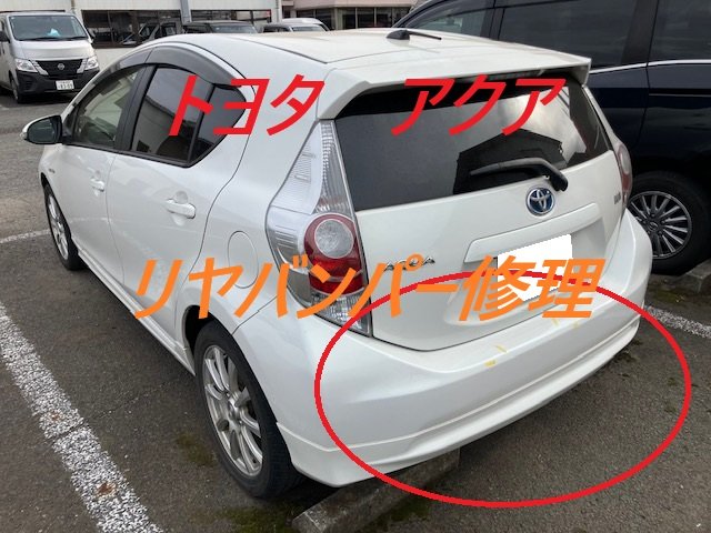 佐倉市|トヨタ アクア リヤバンパー 板金 鈑金 修理 キズ へこみ キズ修理 へこみ修理 取替 交換 保険 保険修理
