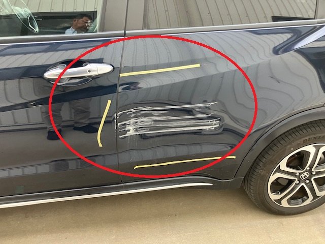 佐倉市|ホンダ ヴェゼル 左フロントドアパネル 左リヤドアパネル 板金 鈑金 修理 キズ へこみ キズ修理 へこみ修理 取替 交換 保険 保険修理