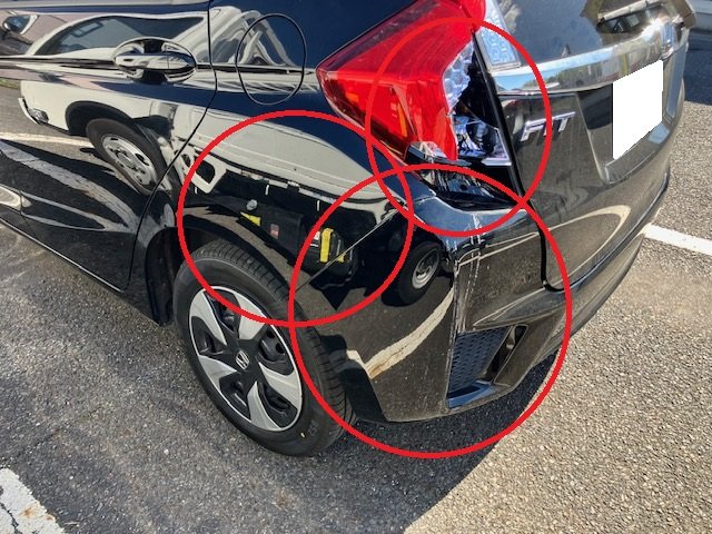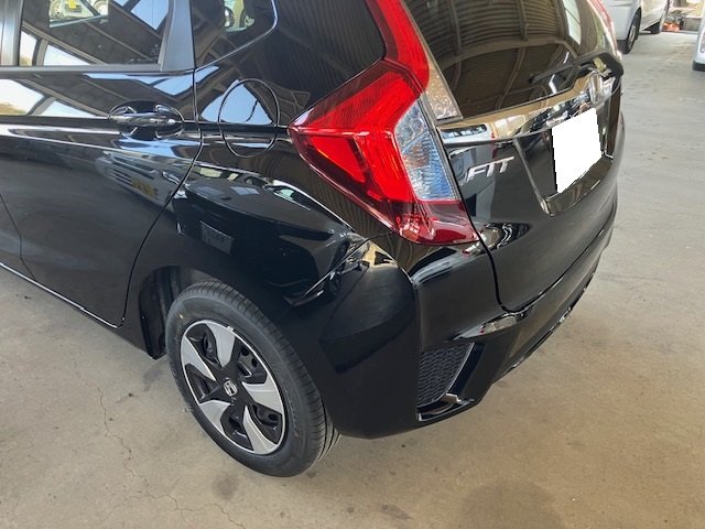 佐倉市|ホンダ フィット リヤバンパー 左アウトサイドパネル 左テールレンズ 板金 鈑金 修理 キズ へこみ キズ修理 へこみ修理 取替 交換 保険 保険修理