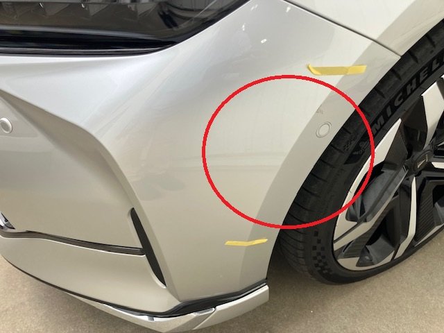 とても、大切にしているので小さな傷でも許せないと言う事で修理させて頂く事になりました。フロントバンパー脱着もするとレーター再設定やソナーの再設定などの作業も必要になり、フロントバンパー修理だけですが、高額なお見積りになってしまいました。すすめます!(^^)