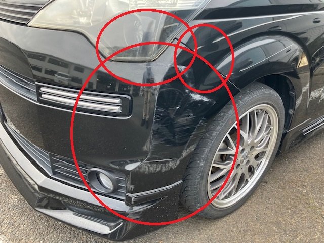 | 修理の箇所・サービス内容 | フロントバンパー・左ヘッドライト・左フロントフェンダ修理 |
