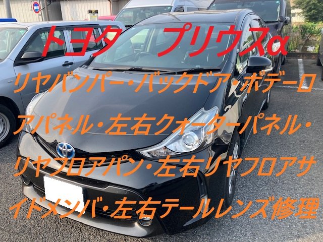 佐倉市|トヨタ プリウスα リヤバンパー バックドア ボデーロアパネル 右クォーターパネル 左クォーターパネル リヤフロアーパン 右リヤサイドメンバ 左リヤサイドメンバ 左右テールレンズ 板金 鈑金 修理 キズ へこみ キズ修理 へこみ修理 取替 交換 保険 保険修理