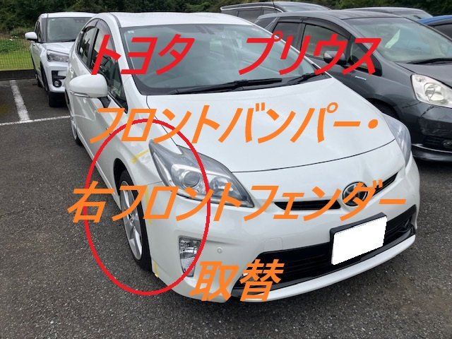 佐倉市|トヨタ プリウス フロントバンパー 右フロントフェンダー 板金 鈑金 修理 キズ へこみ キズ修理 へこみ修理 取替 交換 保険 保険修理