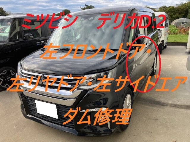 佐倉市|ミツビシ デリカD:2 左フロントドア 左リヤドア 左サイドエアダム 板金 鈑金 修理 キズ へこみ キズ修理 へこみ修理 取替 交換 保険 保険修理