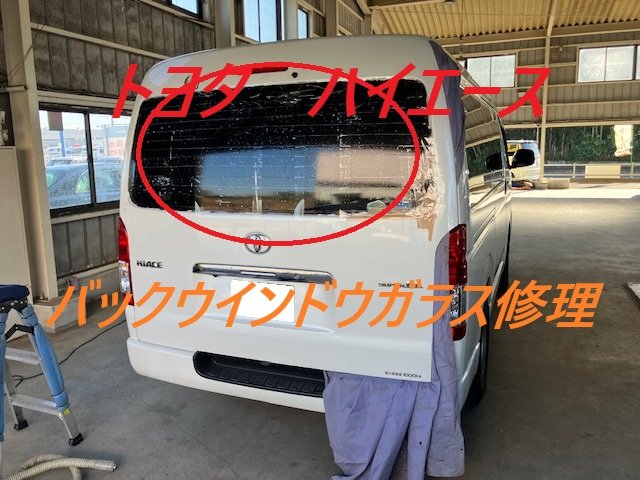 佐倉市|トヨタ ハイエース バックドアウインドウガラス 板金 鈑金 修理 キズ へこみ キズ修理 へこみ修理 取替 交換 保険 保険修理