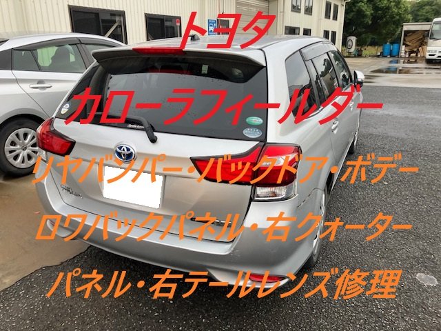 佐倉市|トヨタ カローラフィールダー リヤバンパー バックドア ボデーロワバックパネル 右クォーターパネル 右テールレンズ 板金 鈑金 修理 キズ へこみ キズ修理 へこみ修理 取替 交換 保険 保険修理