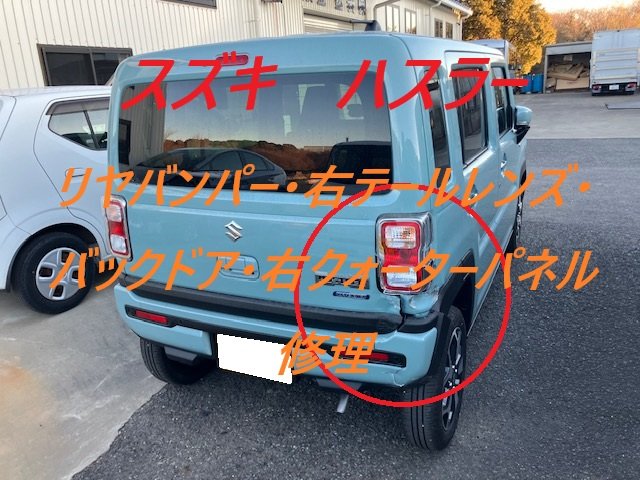 佐倉市|スズキ ハスラー リヤバンパー 右テールレンズ バックドア 右クォーターパネル 板金 鈑金 修理 キズ へこみ キズ修理 へこみ修理 取替 交換 保険 保険修理