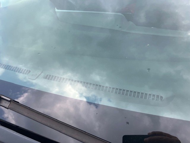 お客様のお話しですと、高速道路を走行中に「ピシ」と音がしてフロントガラスにひびが出来てしまったそうです。多分、飛び石などだと思われます。よく、確認しますと横に2本ひびが伸びてしまっております。交換が必要そうです。(-_-;)
