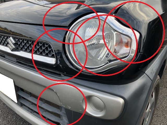 佐倉市|スズキ ハスラー フロントバンパー 左ヘッドライト ボンネット 左フロントフェンダー フロントアッパメンバ 板金 鈑金 修理 キズ へこみ キズ修理 へこみ修理 取替 交換 保険 保険修理