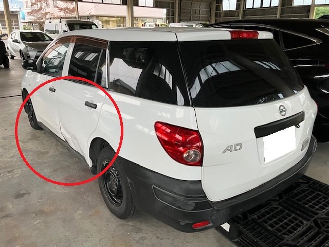 お客様のお話しですと、駐車場でバックしている際に、ポールがあるのを見落としてしまい、左側面をぶつけてしまったそうです。慣れていない場所でのバックは注意が必要ですね!(-_-;)