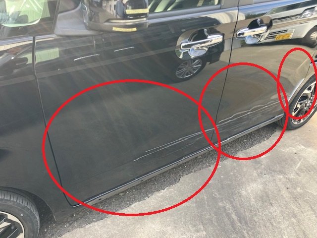 | 修理の箇所・サービス内容 | 左フロントドアパネル・左リヤドアパネル・左サイドシルパネル・左リヤアウトサイドパネル修理 |