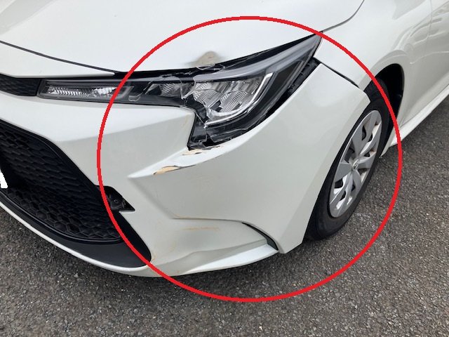 佐倉市|トヨタ カローラ フロントバンパー 左ヘッドライト ボンネット 左フロントフェンダー 板金 鈑金 修理 キズ へこみ キズ修理 へこみ修理 取替 交換 保険 保険修理