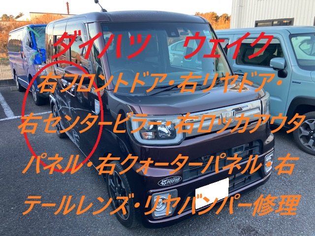 佐倉市|ダイハツ ウェイク 右フロントドアパネル 右リヤドアパネル 右センターピラー 右クォーターパネル 右テールレンズ リヤバンパー 板金 鈑金 修理 キズ へこみ キズ修理 へこみ修理 取替 交換 保険 保険修理