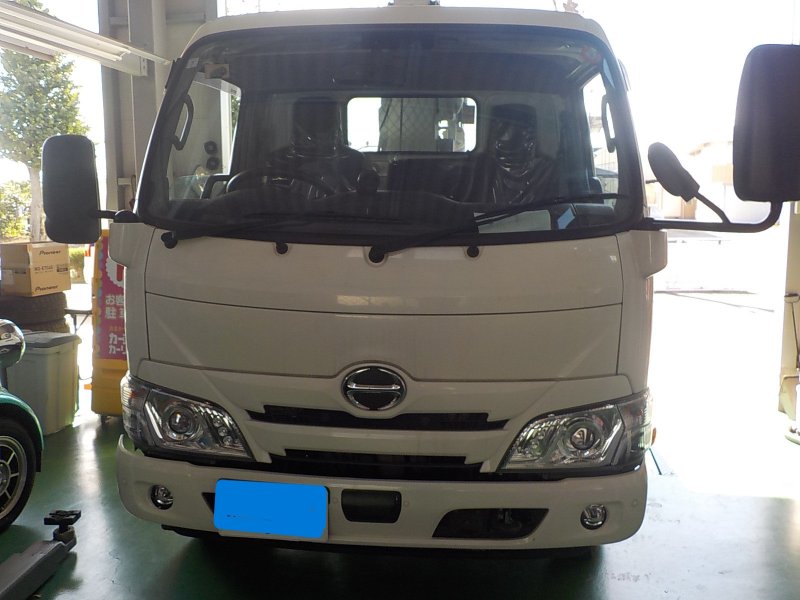 千葉県野田市|4トントラック(日野)のキズ・へこみ直し事例(フロントガラス交換)