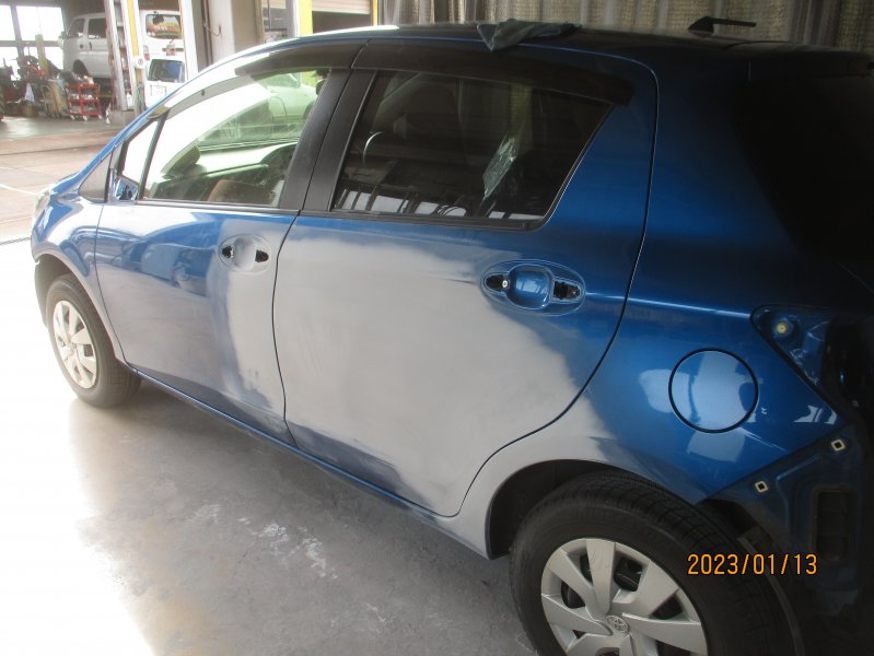 上越市 妙高市 トヨタスペイド リア右側フェンダー修理 新品バンパー交換