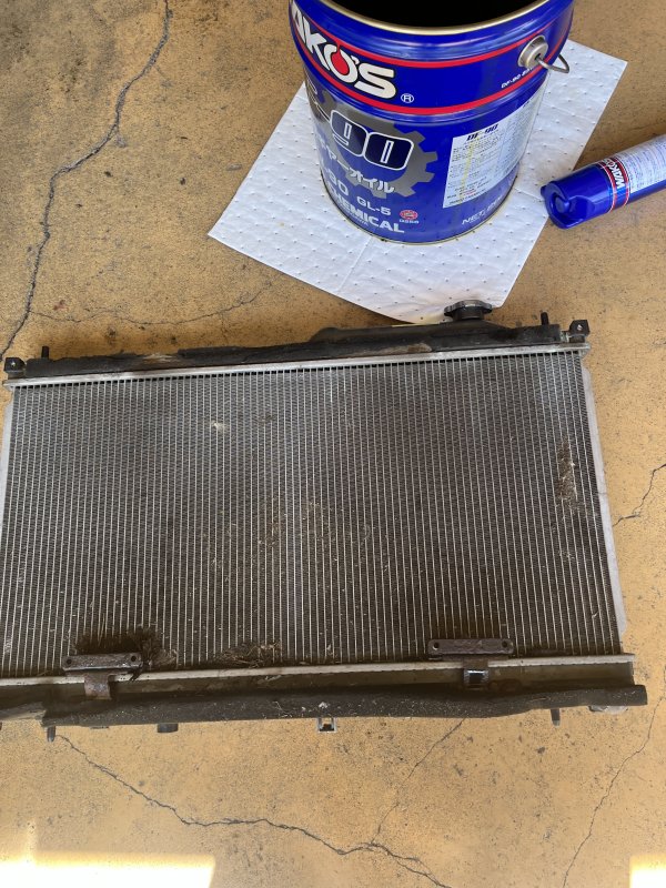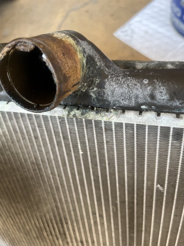 取り外しラジエーターのアッパータンクけら冷却水漏れが確認できました。