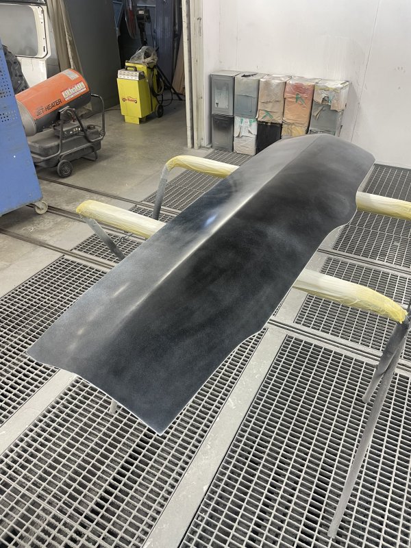 新品のボンネットを塗装します。