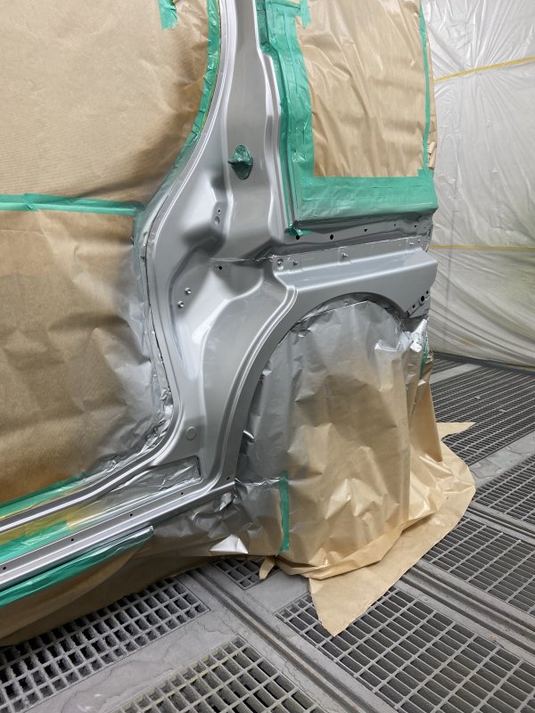マスキングをして塗装中。