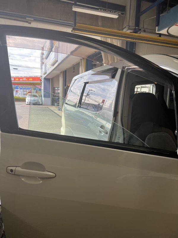 運転席ドアガラスの脱落でご入庫いただきました。