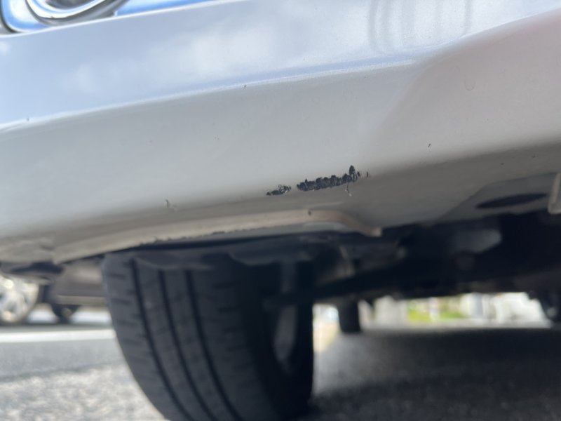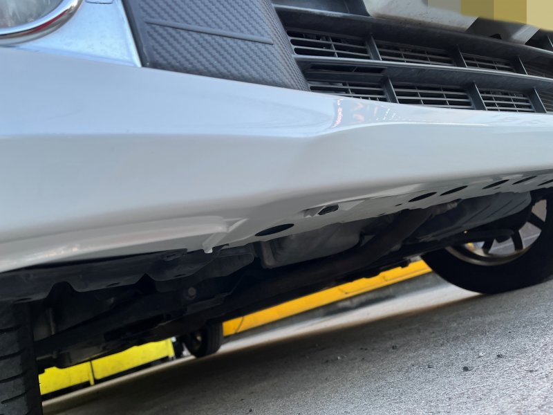 バンパーの下側にキズがあり、今回はフロントバンパーを取付したまま修理を行いました😊
