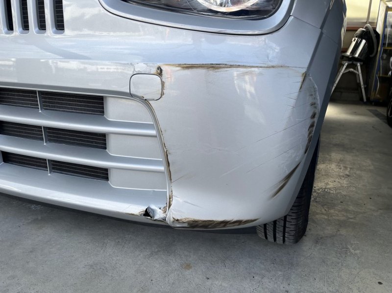 フロントバンパー左側がちぎれており、フロントフェンダーも変形していた為、どちらも交換します👨🔧