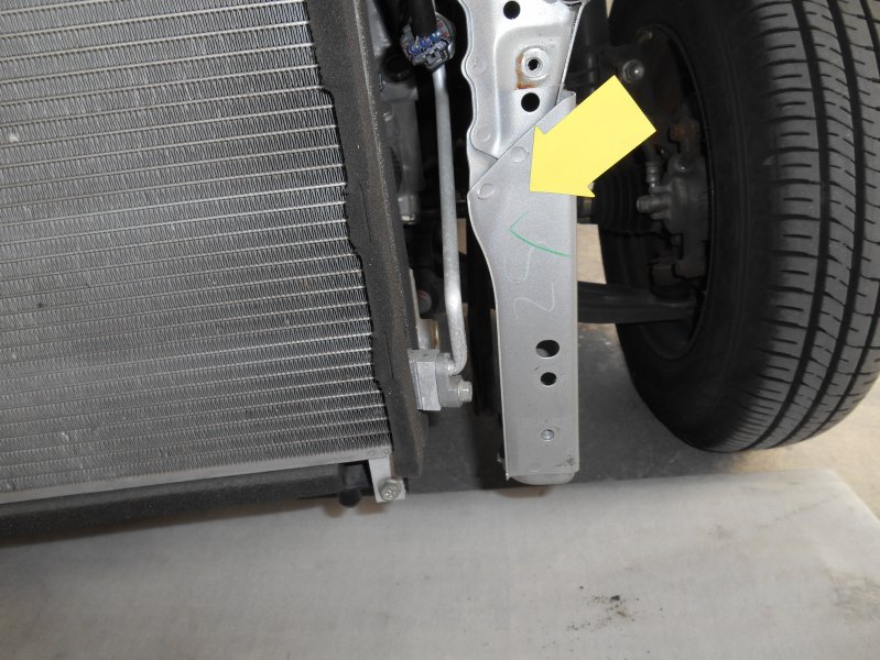 ↑バンパーを外すと、ラジエーターサポートも少し曲がっていました😣