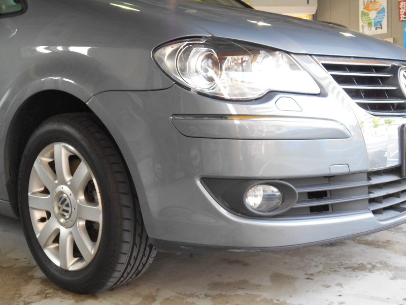 ディーラーさんに相談したところ、交換と言われたとの事でしたが、当店では最低限の部品交換とバンパーの塗装で修理を行いました。