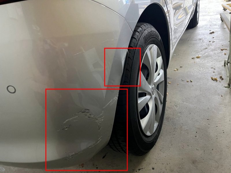 右側下側に擦り傷と、擦り傷の上側が折れ曲がったように変形していました😣