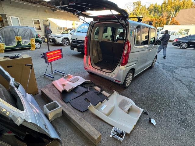 ホンダ N-BOX リア廻り修理(バックドア交換、右テールランプ及びトリム類交換、リアバンパー鈑金修理) キズ、へこみ修理 印西市、柏市、我孫子市 他エリアからのお客様も大歓迎!