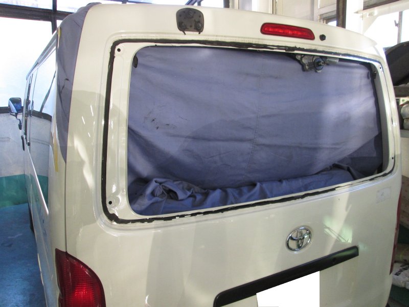 【川崎市・横浜市・狛江市・世田谷区・目黒区・品川区・大田区】 ハイエース リアガラス/リアアンダーミラー 破損・ヒビ・割れ修理