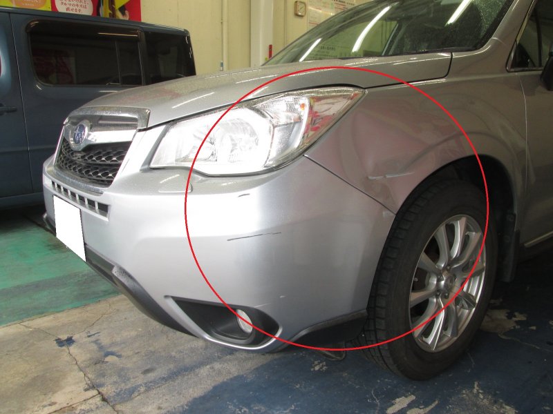 【川崎市・横浜市・狛江市・世田谷区・目黒区・品川区・大田区】 フォレスター フロントバンパー/左フェンダー/左前ドア キズへこみ修理