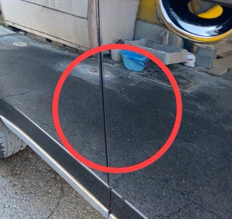 お客様がドアを開けた際に自転車に接触しえくぼのへこみが発生。