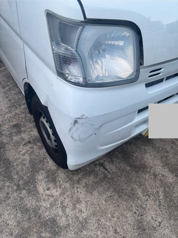 ダイハツ ハイゼットにお乗りのお客様よりハンドル操作を誤りフロントバンパーからフェンダー部分を壁にぶつけてしまい大きな傷やへコミが出来たため、修理のご相談で来店頂きました。