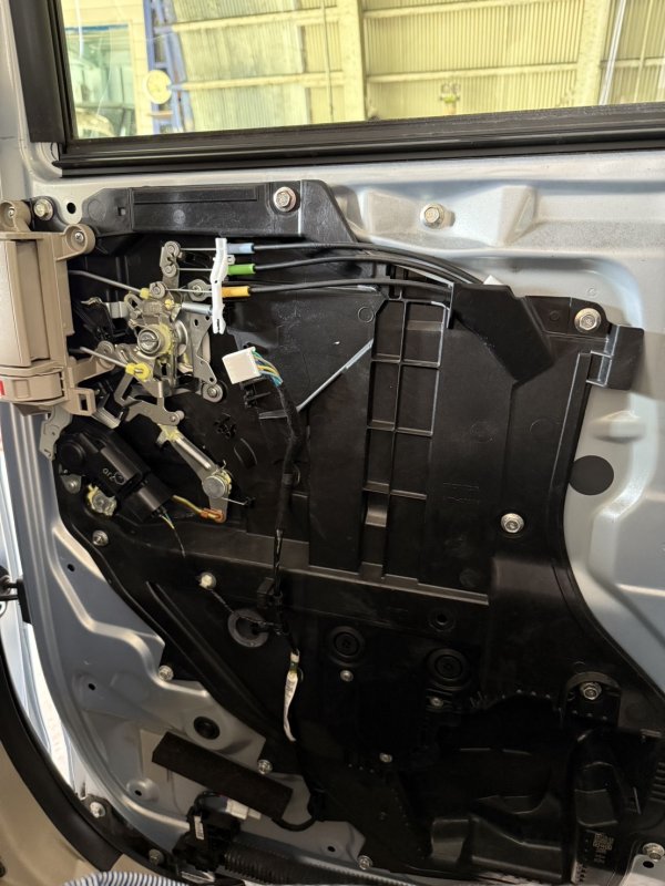 右スライドドアのガラスが割れてしまい、右スライドドアのガラス交換を実施しました。