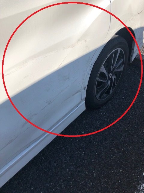 お車を確認させて頂くと、左側面(左後ろドア・左クォーター・リアバンパー)にへこみを伴う擦り傷が付いていました。お客様曰く駐車場で擦ってしまったとの事でした。