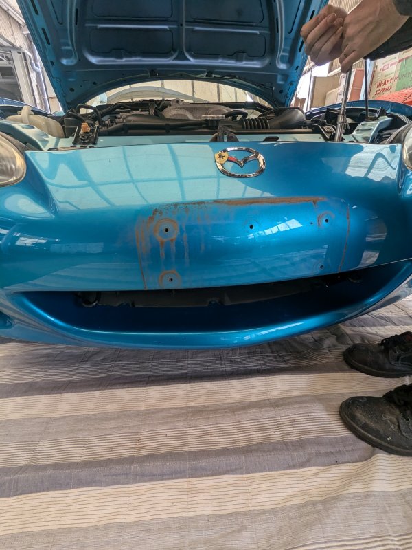 【岩国市】2月に75台修理実績!ロードスターのスポイラー&バンパー修理・塗装、ナンバー穴スムージング・オフセットならフジイBANKIN岩国店にお任せ!