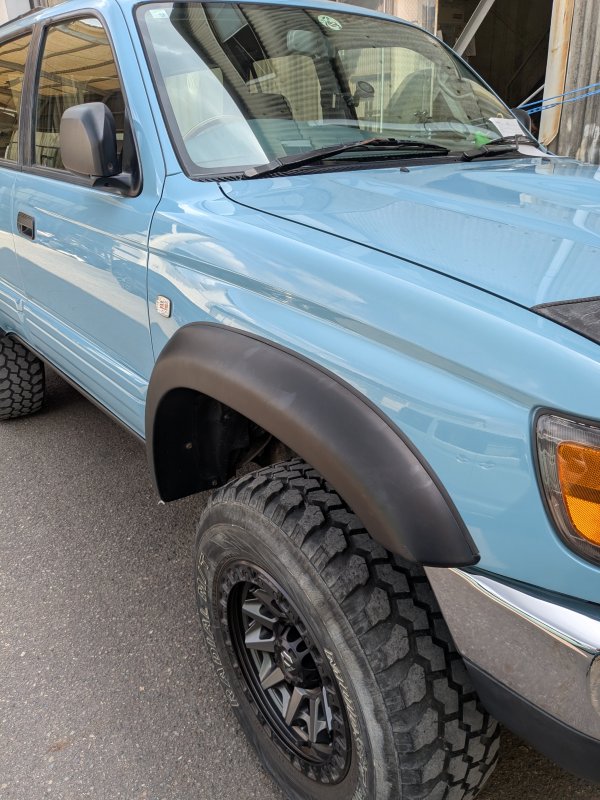 ハイラックスサーフのボディカラーに合わせて塗装を実施。塗装ブースでホコリを防ぎ、高品質な仕上がりを実現。