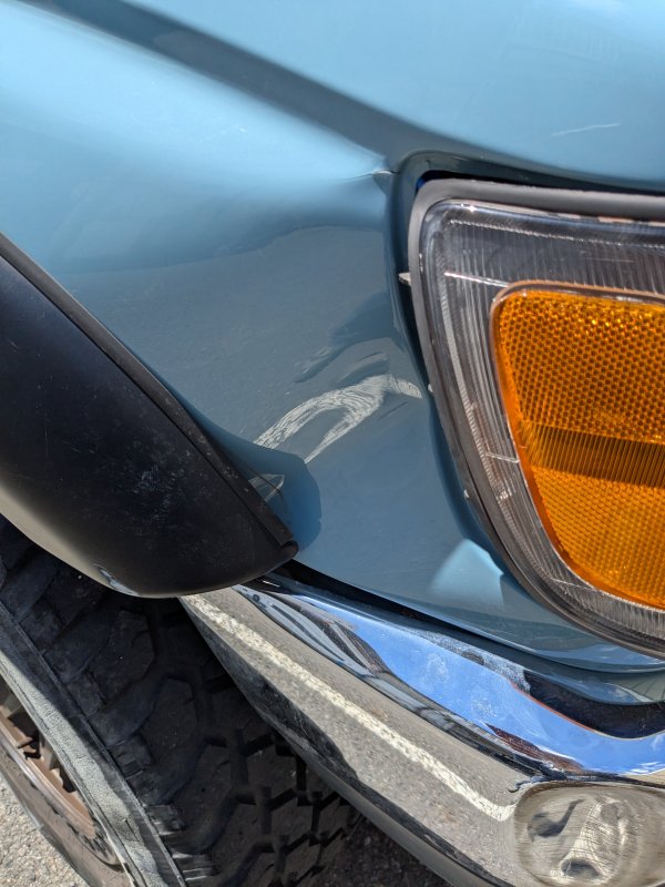 【岩国市】右フロントフェンダーの大きなヘコミ修理ならハイラックスサーフもフジイBANKIN岩国店にお任せ!