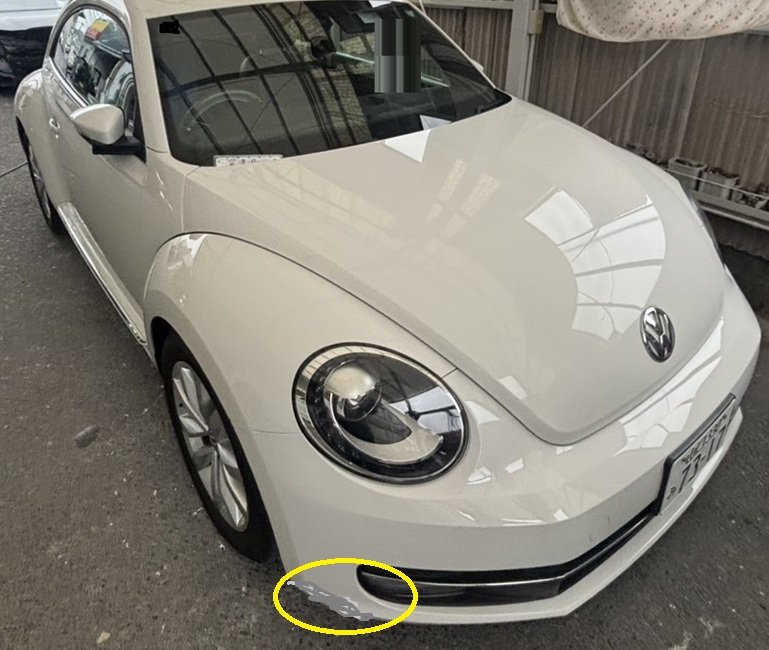 山口県岩国市|フォルクスワーゲン(フォルクスワーゲン)のキズ・へこみ直し事例(フロントバンパーのえぐれキズ・凹み直し)