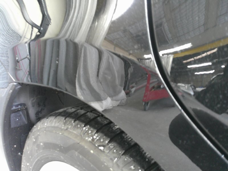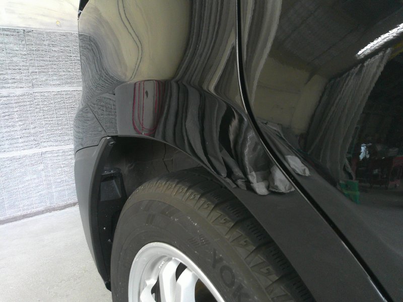 お話を伺うと、非常に風の強い日に駐車場にて、予期せぬトラブルで左クォーターパネルを当てられてしまったとのこと。大切なお車に小さなへこみができてしまい、大変ショックを受けておられました。