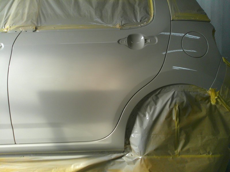 リヤドアからクォーターパネルにかけての連続したキズとへこみは、パネル間のラインをいかに自然に繋げるかが職人の腕の見せ所です。2023年式の新しいお車ということもあり、塗装の色合わせ(調色)も慎重に行い、修理箇所が分からないほど美しく仕上げさせていただきました。