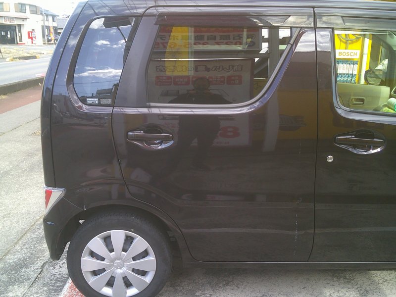有限会社 石原自動車ボデーです。この度は、スズキ・ワゴンRのリヤドアとクォータパネルのへこみ・キズ修理のご依頼をいただきましたので、作業事例をご紹介いたします。