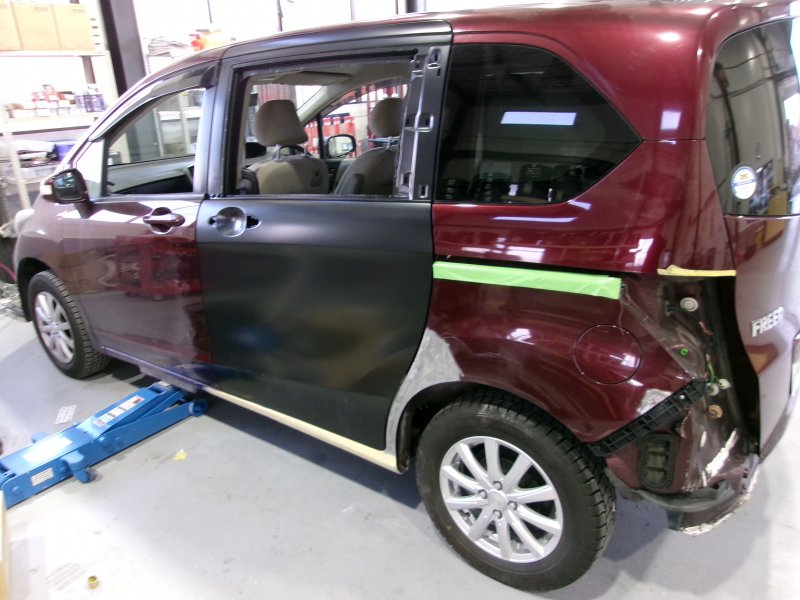 今回のご紹介はフリードのリアドアとクオーターパネルの鈑金塗装修理となります。
