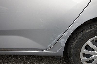この度は、リアドアからクォーターにかけて擦ってしまったとのことで、ダイハツ ミライースを入庫いただきました。