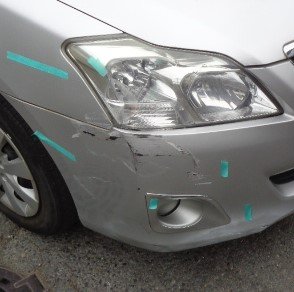 水戸市 トヨタ プレミオ フロントバンパー 板金 鈑金 キズ修理 キズ直し へこみ直し キズ直し