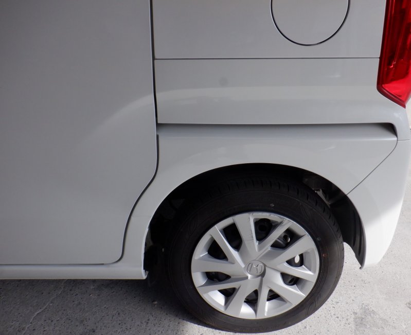 N-BOX左側リアフェンダー部分に大きな傷です。
