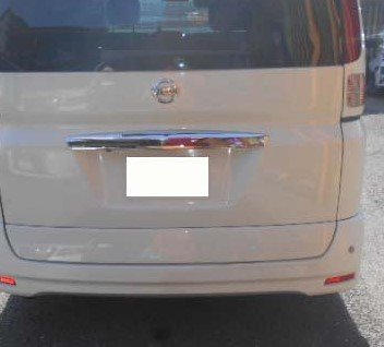 日産セレナ、リアバンパー修理です。