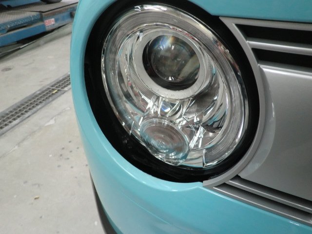 ぶつかった衝撃でヘッドランプが内側に少し入っています。