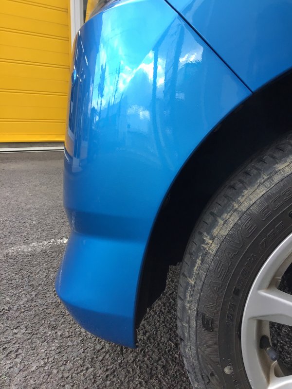 いつもお世話になっております。カーコンビニ俱楽部NA名取店です。今回はミライース・バンパー修理のご紹介です。フロントバンパー左カドを損傷にてご入庫いただきました。きれいに仕上がりお客様にも喜んでいただきました。