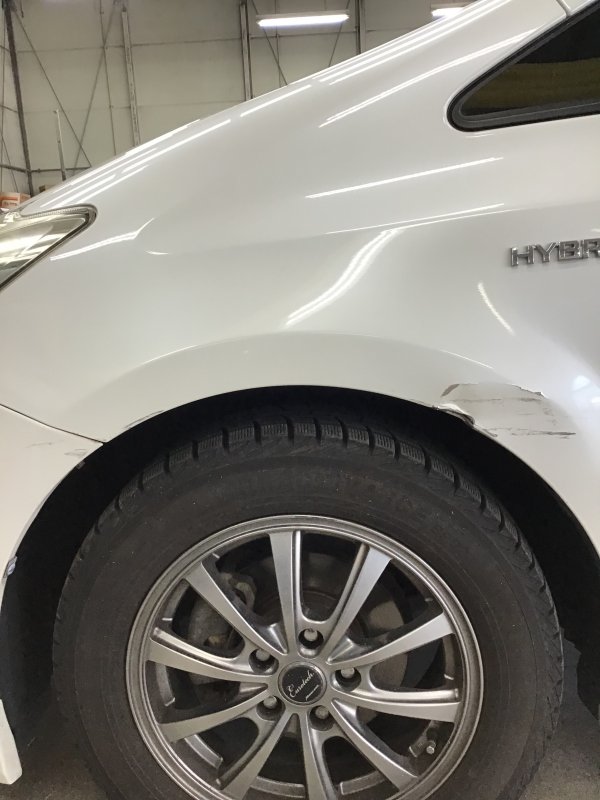 いつもお世話になっております。カーコンビニ俱楽部NA名取店です。今回はプリウスαの修理のご紹介です・左フロントバンパーフロントフェンダーの損傷にてご入庫いただきました、きれいに仕上がりお客様にも喜んでいただきました。